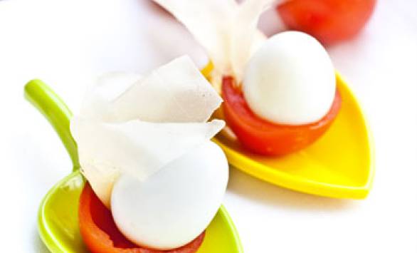 Prendete un nastro di GranSfoglia, ripiegatelo su se stesso in modo da ottenere un grazioso ricciolo e inseritelo tra il mezzo pomodorino e l’uovo.