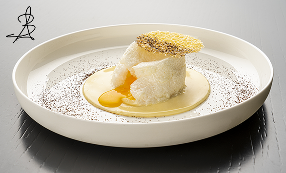 Il piatto consiste infatti in un Biancomangiare, preparato con albume montato a neve e tuorlo infornati, servito su una cremosa fonduta di Grana Padano Riserva Ferrari. Al centro del biancomangiare viene adagiata la cialda croccante, sempre di Grana Padano, e si termina spolverizzando il caffè. Chi ama il Grana Padano sarà sicuramente curioso di provare questo piatto!