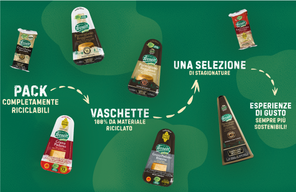 Packaging green, 100% riciclabili, che preservano le proprietà organolettiche dei prodotti e ne aumentano la durata una volta aperti: un bel traguardo verso la sostenibilità, uno dei molti sforzi che sta compiendo Ferrari Formaggi per un futuro più verde. Come la tutela della biodiversità attraverso la produzione di Parmigiano Reggiano Prodotto di Montagna, o la scelta di utilizzare solo energia elettrica green.
