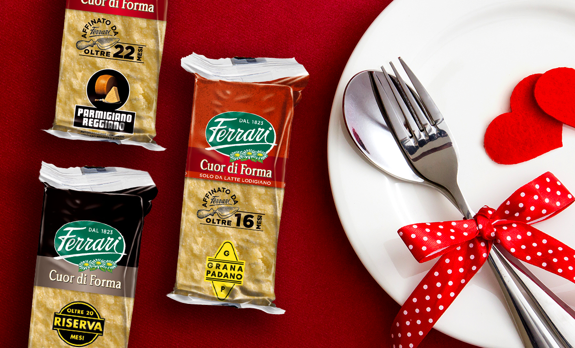 Direttamente dal "cuore" della forma, i Cuor di Forma Ferrari sono confezionati in atmosfera protettiva per garantire un formaggio fragrante e friabile, come appena tagliato.