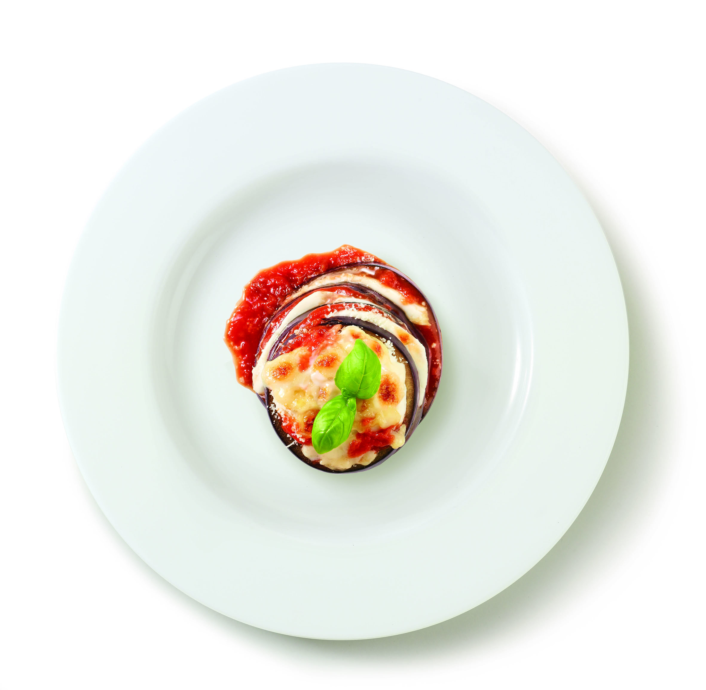 Prendete delle formine monodose, ungetele con un po’ di olio extravergine, adagiato sul fondo mettete un piccolo strato di sugo di pomodoro, disponete un disco di melanzana, un po’ di GranMix Fila e Gusta e procedete in questo modo fino a completare le formine monodose.